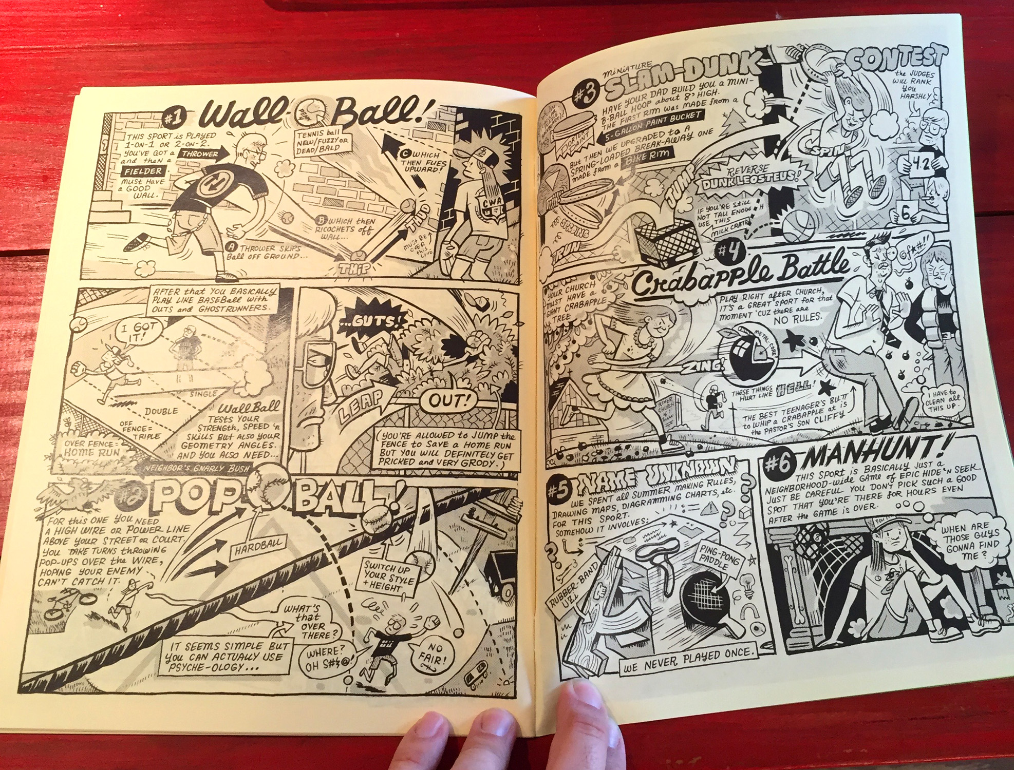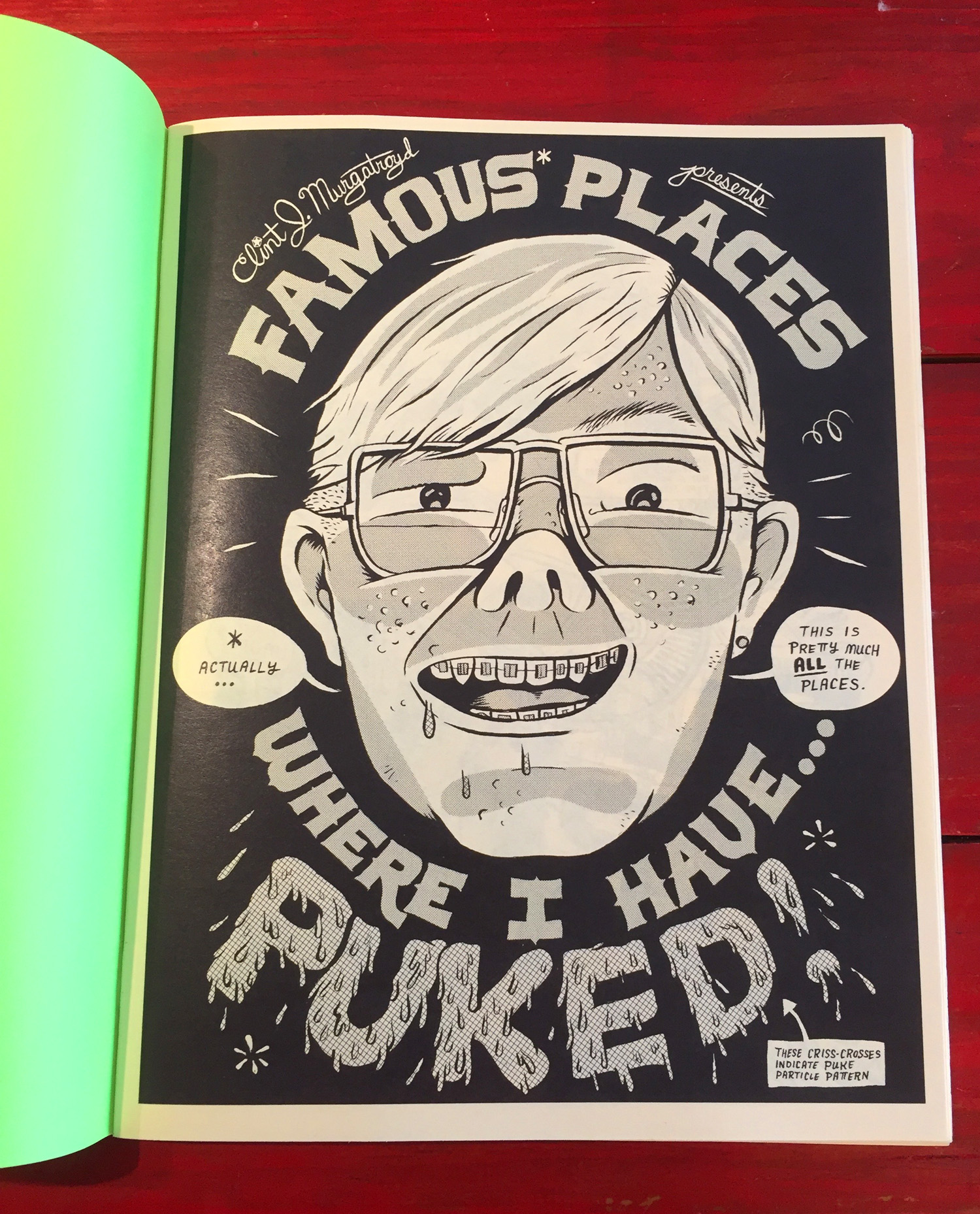 32-paged letter-sized comic with screenprinted flourescent/metallic covers and xeroxed guts. Short slice-of-life cartoon stories featuring Krystal and Clint and friends, some of which have appeared in other anthologies. There are strips about growing up, electrical rewiring, fishing, garlic and sports. Cover may be printed on different color paper.