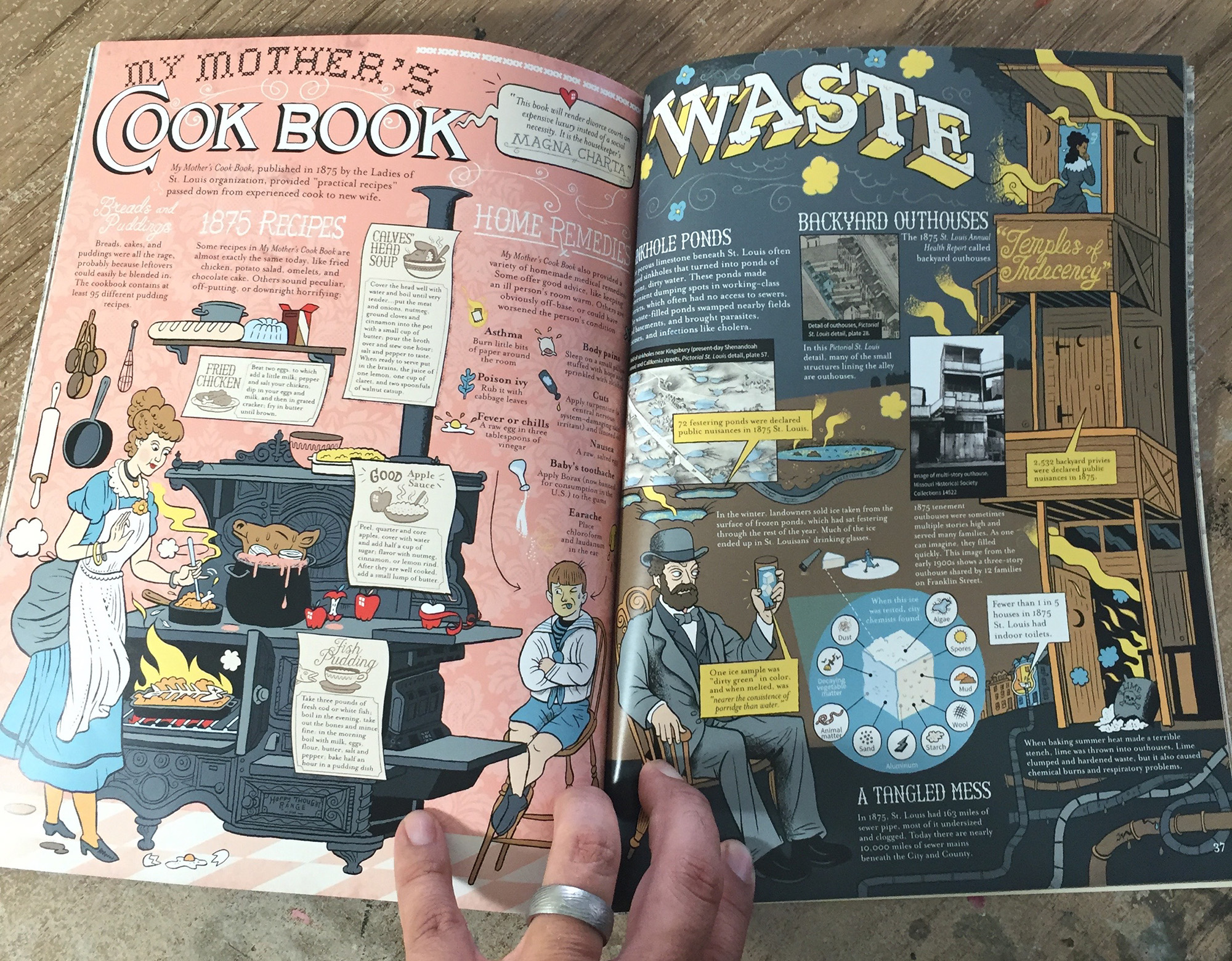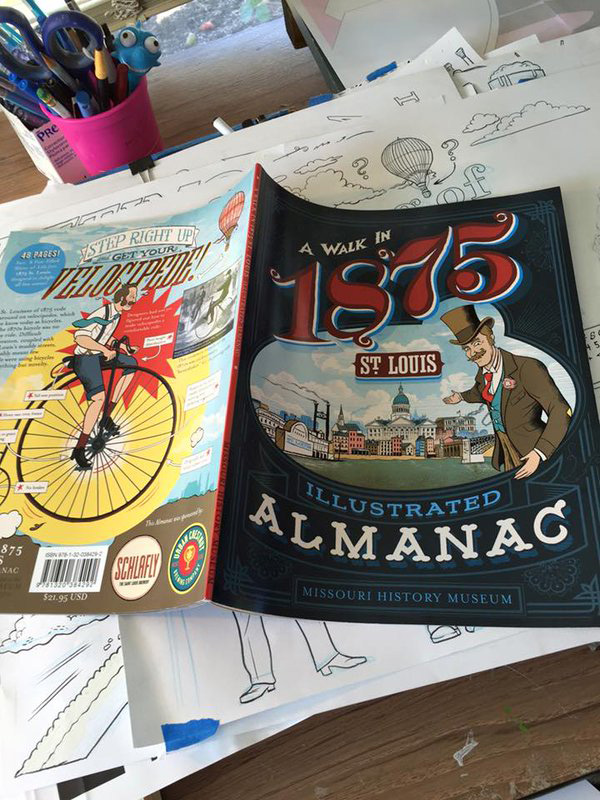 48-page softcover book published by The Missouri History Museum in conjunction with the 2015-16 exhibit A WALK IN 1875 ST. LOUIS http://mohistory.org/node/10140 . The book contains every wall-sized illustration and infographic I created for the exhibit, conveniently packaged in a fun, informative full-color almanac format.