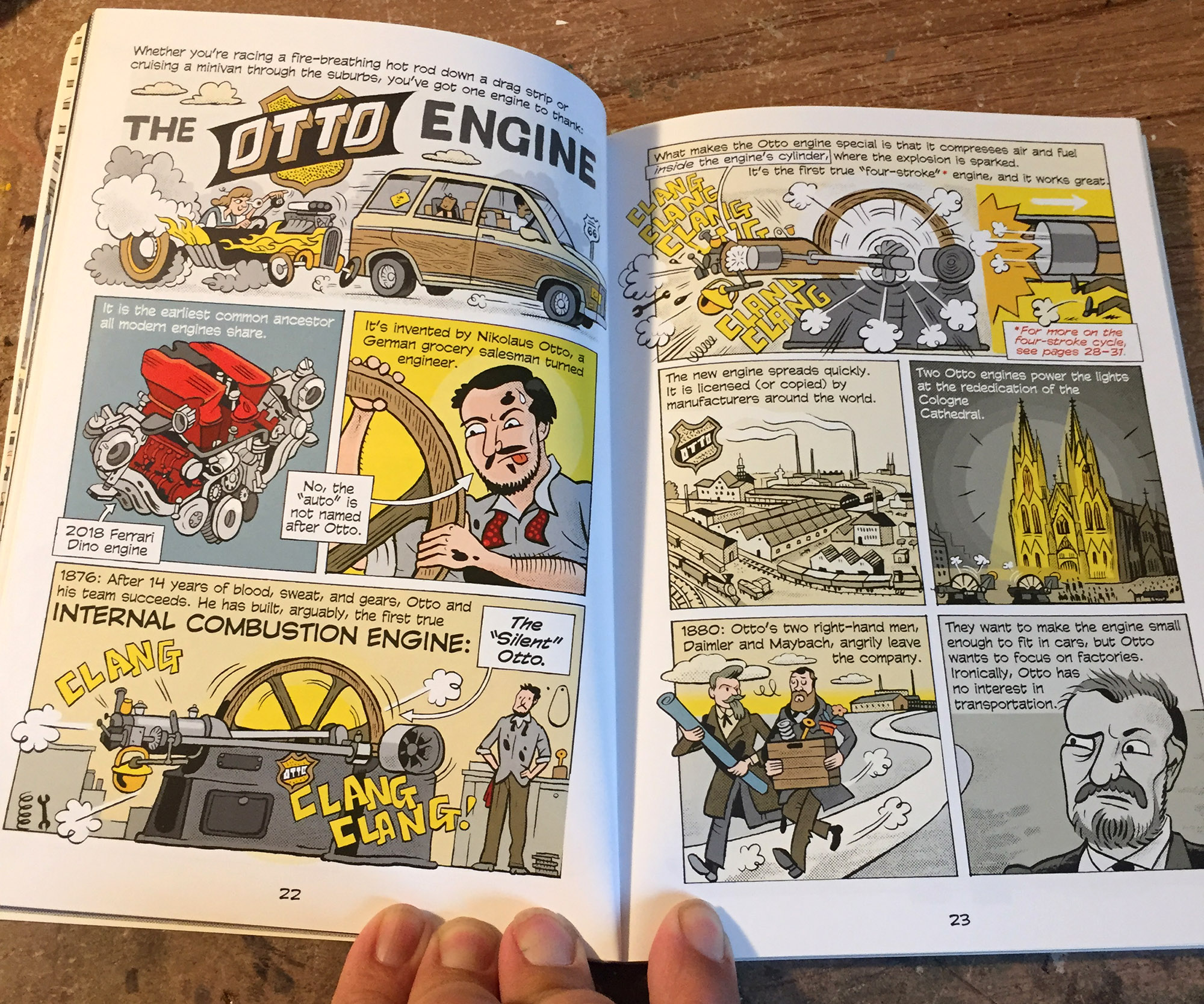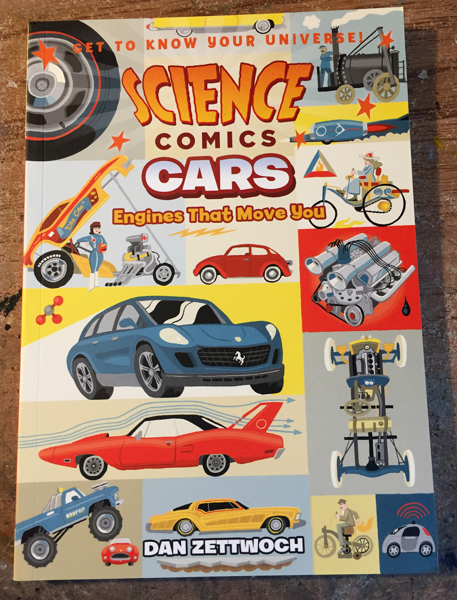 Graphic novel written and illustrated by Dan Zettwoch, published as part of First Second's SCIENCE COMICS series. "First we learned to harness fire. Then we invented the wheel. From that point, humanity was on a collision course with a new form of personal locomotion that would leave our feet, and even horses' hooves, in the dust. Hop in for a ride!" 124 pages, softcover, 6.5x8", for kids of all ages.